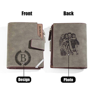 Personalised Photo Men's Leather Wallet - Custom Text Engraving Father's Day Gift