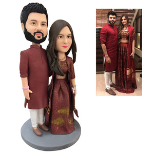 High-quality custom couple bobblehead for wedding or birthday, fully customized two person desk decoration, long-lasting polymer clay art.