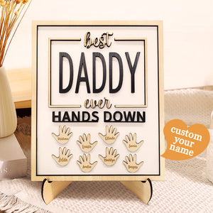 Personalised Best Daddy Ever Hands Down Wooden Plaque with Kids' Names | Gift for Dad & Grandpa