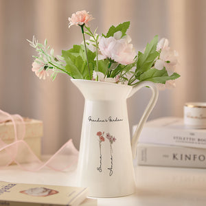 Personalised Birth Flower Ceramic Vase - Custom Home Decor Gift for Mum & Grandma