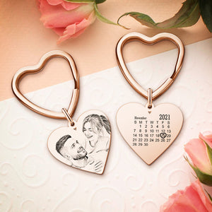 Personalised Photo Calendar Keychain - Heart Engraved Memorial Gift for Wedding & Anniversary