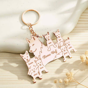 Personalised Wolf Family Keychain Engraved with Names - Unique Gift