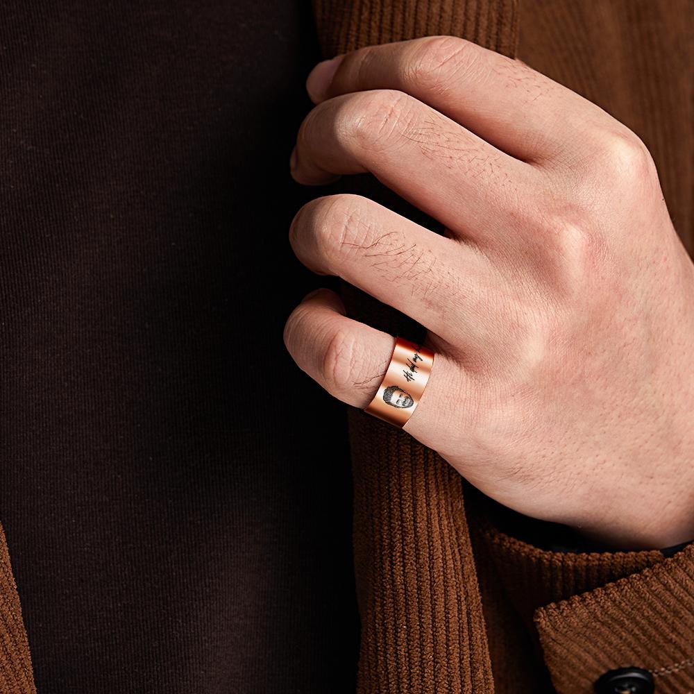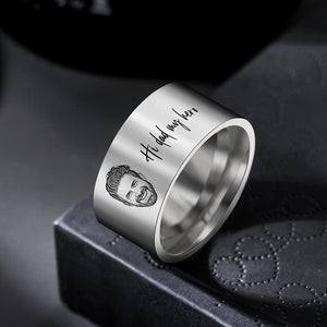 Personalised Men's Photo Ring with Engraving - Custom Father's Day Gift