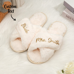 Personalised Fluffy Cross Slippers - Bride & Bridesmaid Gift